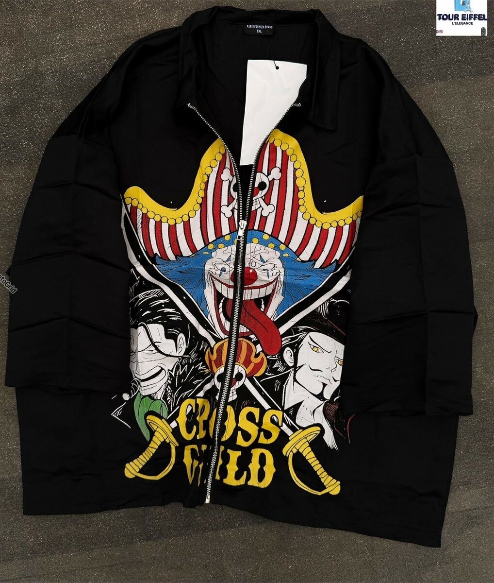 Découvrez cette veste noire audacieuse avec un imprimé pirate unique et vibrant. Parfait pour les amateurs de mode originale, elle ajoutera une touche de caractère à votre garde-robe. Portez-la pour un look casual mais affirmé lors de vos sorties en ville.