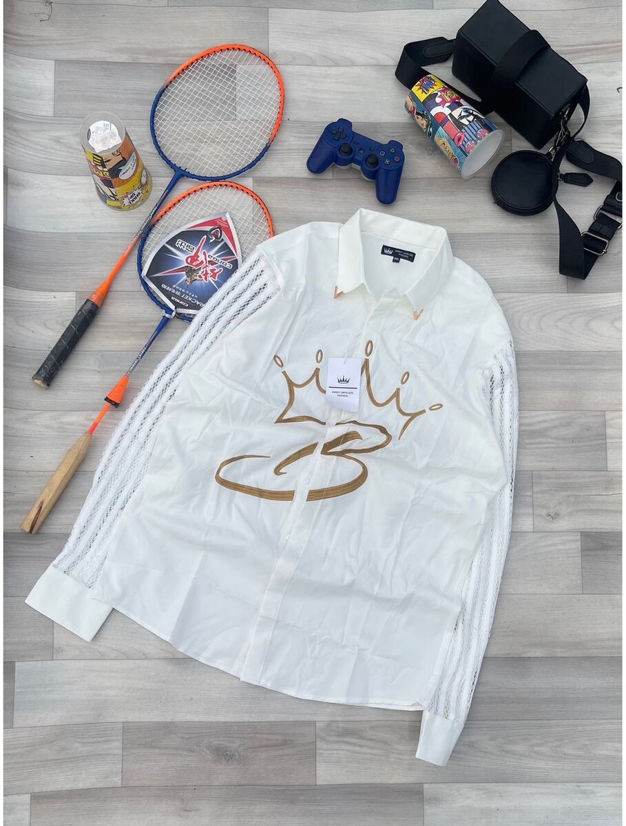 Chemise élégante en noir et blanc ornée d'une couronne dorée. Idéale pour des occasions formelles ou des sorties chics. Confortable et tendance, elle s'associe facilement à votre garde-robe. Parfaite pour ceux qui aiment se démarquer avec style.