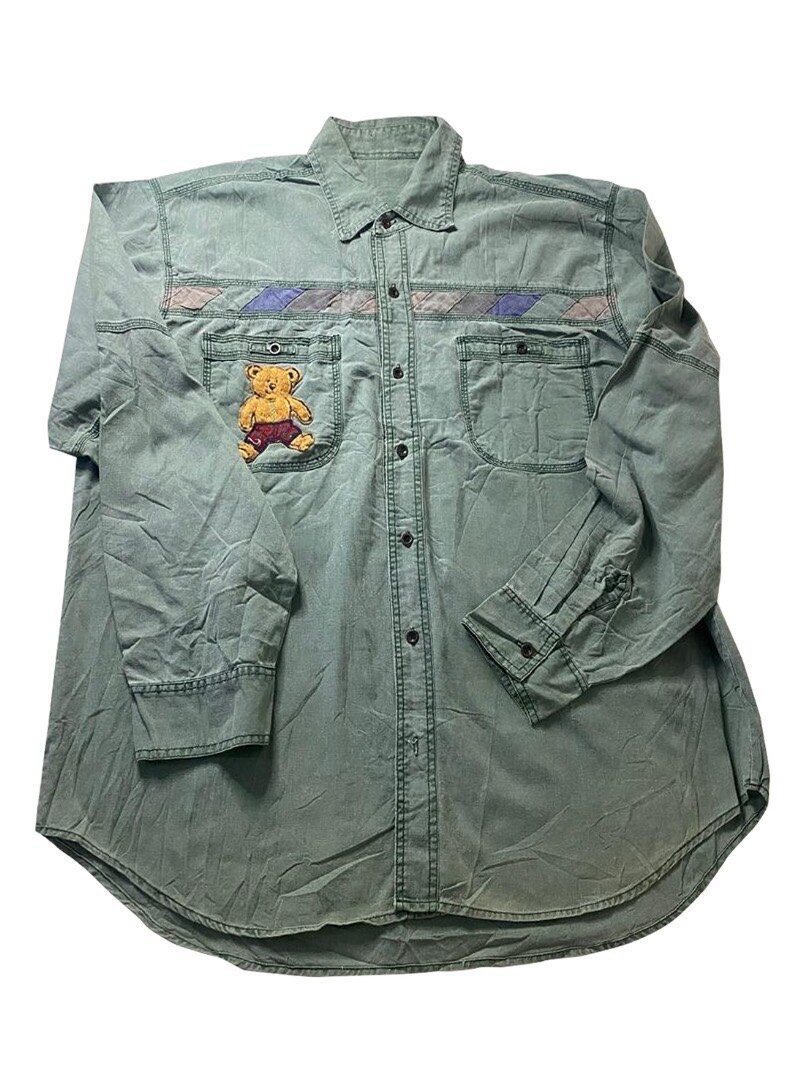 Adoptez un style unique avec cette chemise en jean vert, ornée d'une broderie d'ours adorable. Parfaite pour une touche décontractée et originale au quotidien, cette chemise vous assure confort et chic. Idéale pour les sorties entre amis ou les journées détente, elle se marie parfaitement avec un jean ou un pantalon casual. Composition de haute qualité pour une durabilité optimale. Un must-have pour une tenue tendance!