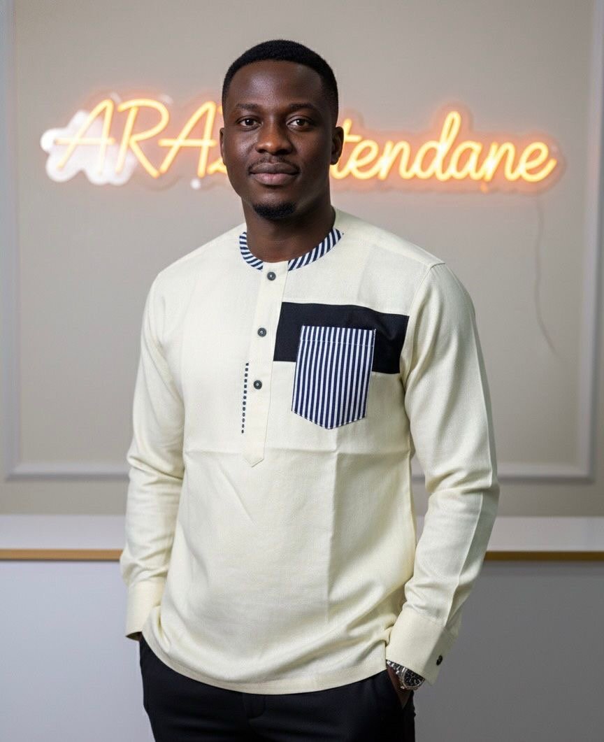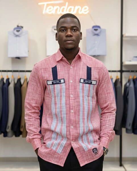 Chemise élégante en lin pour homme avec détails à rayures. Parfaite pour des occasions spéciales ou une tenue décontractée chic. Confort et style assurés.