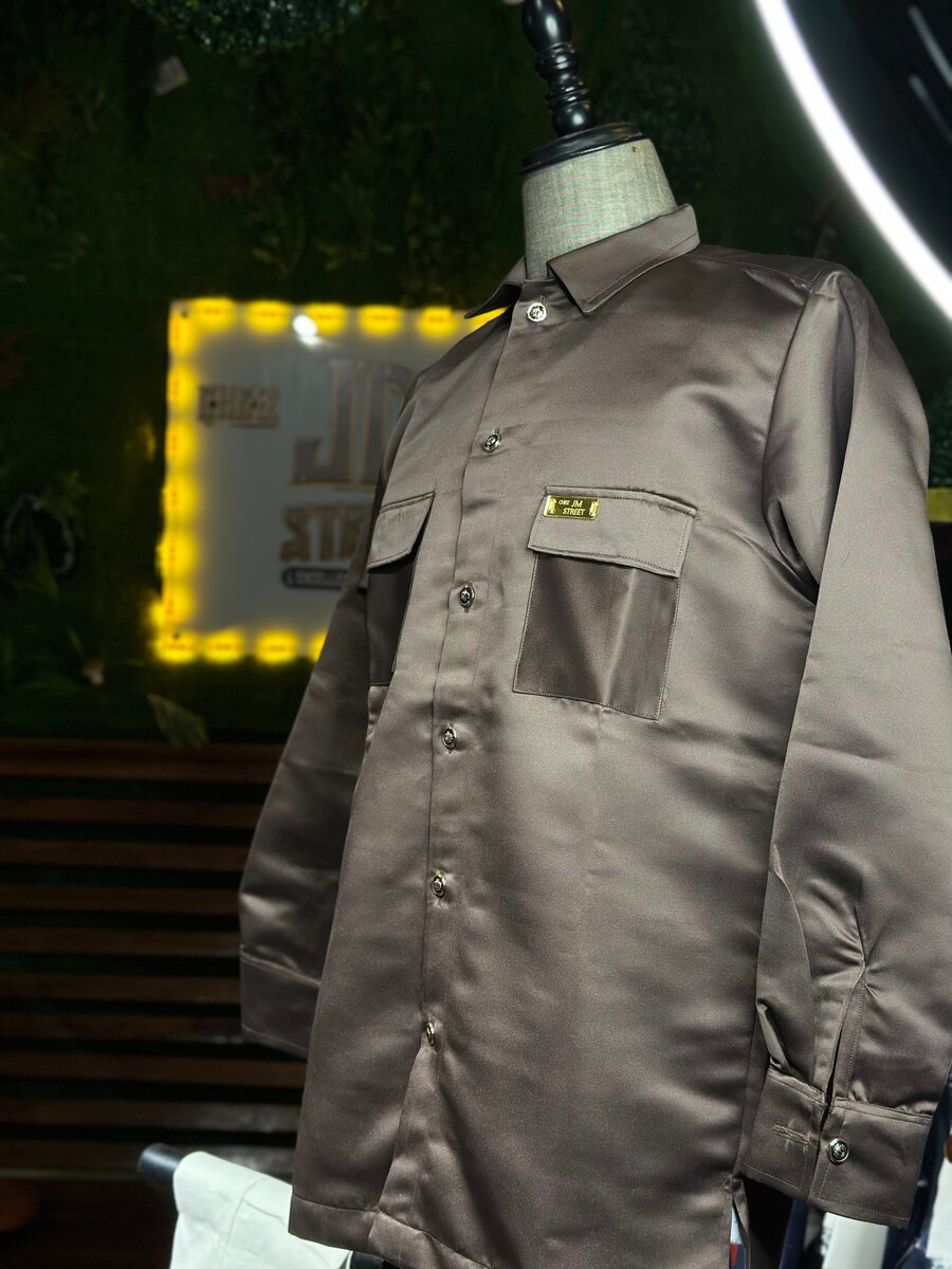 Optez pour l'élégance avec cette chemise en satin brun. Parfaite pour les occasions formelles ou un look raffiné au quotidien. Fabriquée avec soin, elle offre une sensation douce et un ajustement confortable. Idéale pour les hommes qui apprécient le style et le confort.