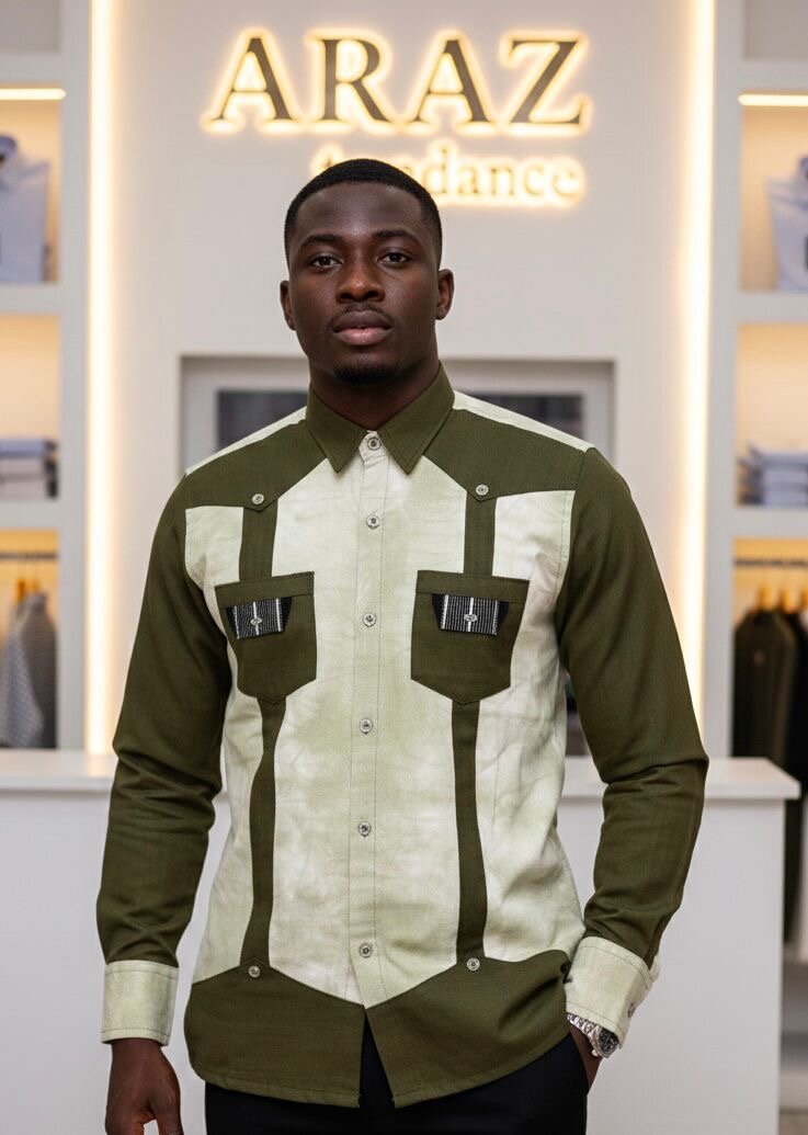 Cette chemise élégante pour homme combine un design moderne et des couleurs bicolores attrayantes. Parfaite pour les occasions spéciales ou professionnelles, elle est confectionnée en tissu de haute qualité pour un confort optimal. Les poches stylisées apportent une touche d'originalité.