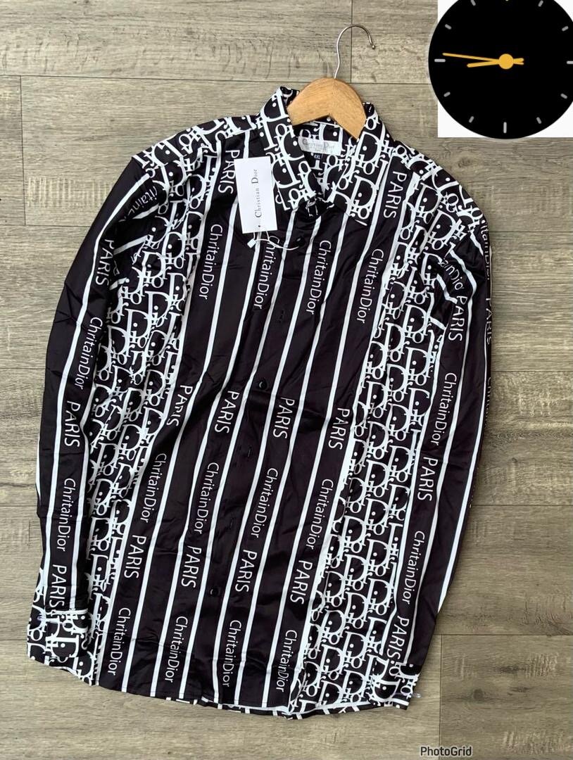 Chemise homme Christian Dior noir avec motifs rayés et logo. Confortable et élégante, idéale pour les occasions décontractées ou professionnelles.