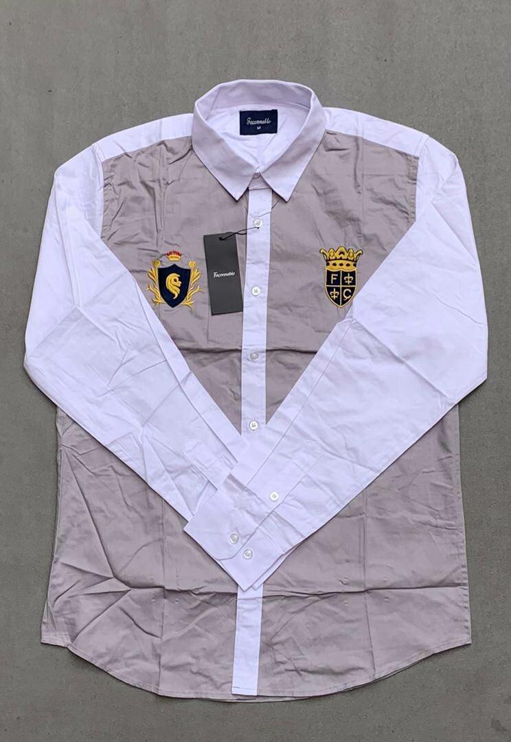 Optez pour cette chemise en coton brodée, idéale pour un look sophistiqué. Design bicolore et écussons raffinés ajoutent du caractère. Parfaite pour des occasions formelles ou décontractées, elle assure confort et style. Un choix élégant pour l'homme moderne.