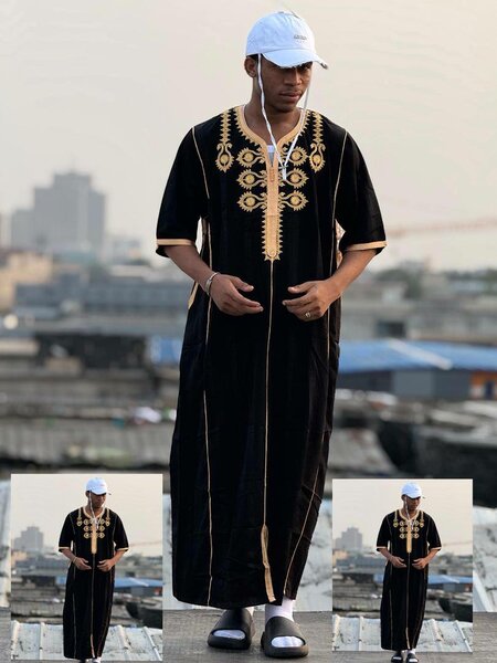Caftan homme bleu et noir pour Ramadan