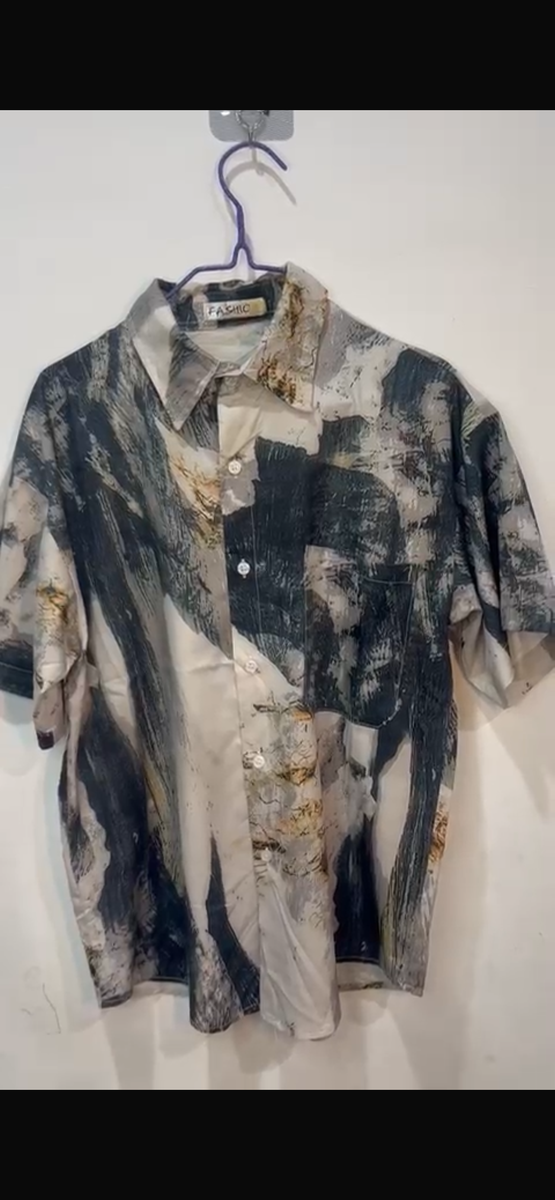 Chemise à manches courtes pour homme avec design artistique abstrait. Tissu léger et respirant, parfait pour les sorties décontractées ou les événements estivaux. Élégante et unique pour se démarquer.