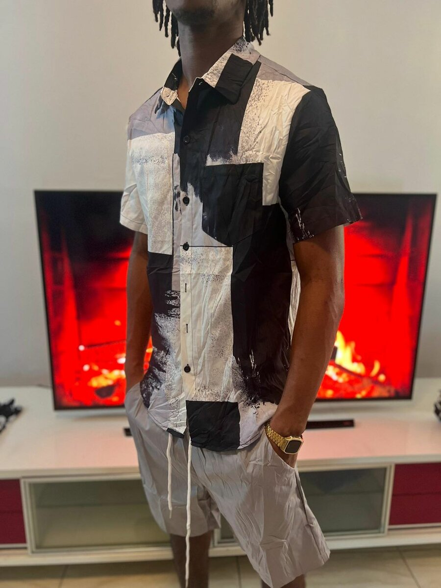 Chemise homme en tissu léger, idéale pour l'été. Style décontracté et moderne.