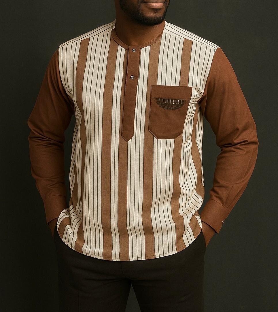 Chemise homme élégante à rayures, manches longues, col officier. Parfaite pour un look casual ou habillé. Matière confortable et poche pratique.
