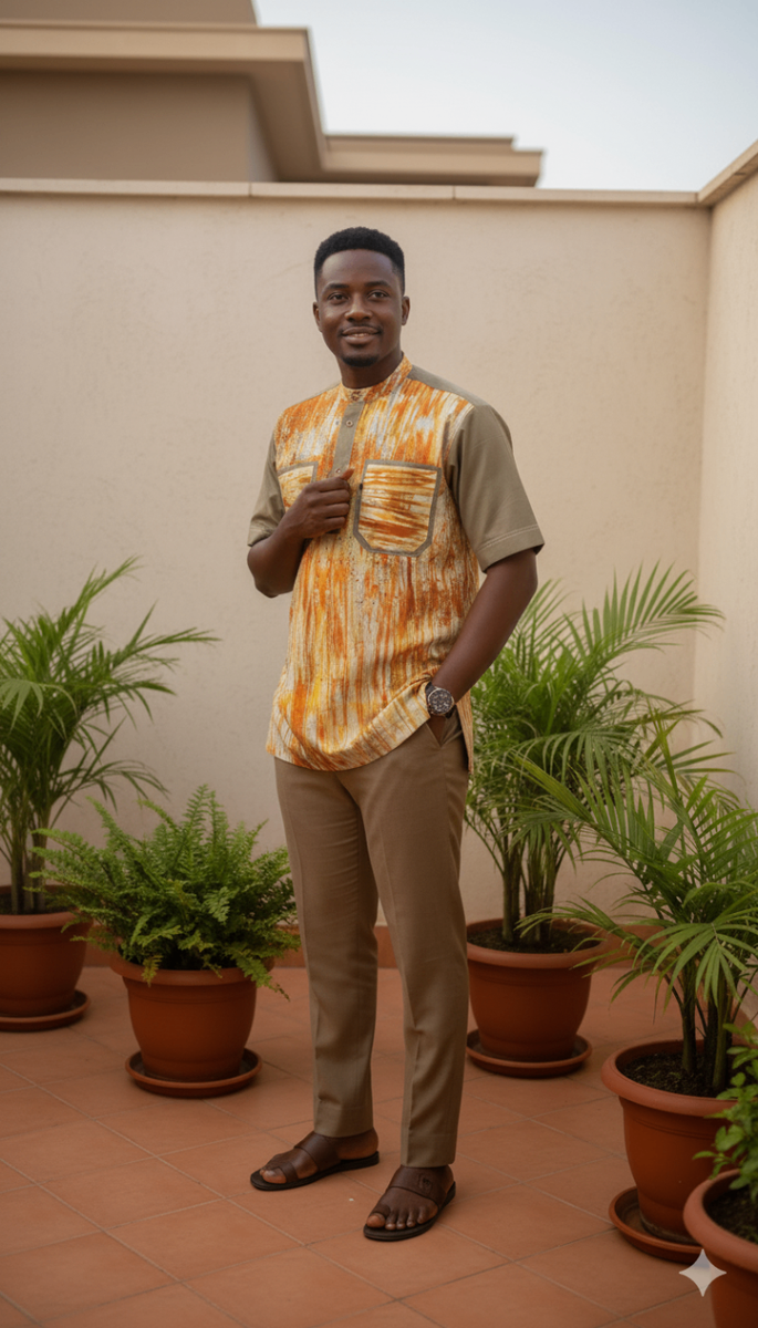 Une pièce qui a du caractère. Entre les reflets chauds du pagne et la coupe moderne, cette chemise fait ressortir lassurance de celui qui la porte. disponible en ligne et en showroom.