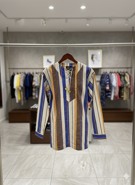 Chemise homme manches longues col tulipe en bordeaux avec manches à carreaux. Design pratique avec poches avant, idéale pour les ateliers créatifs ou le bricolage. Confortable et stylée pour un usage quotidien.