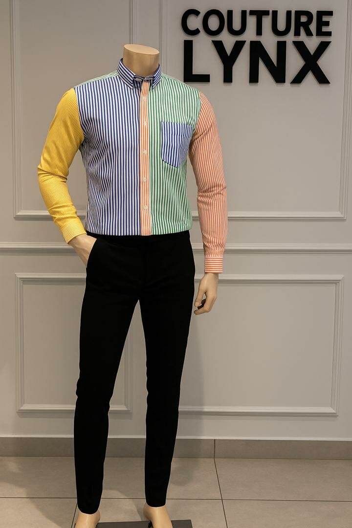 Découvrez notre chemise tendance pour homme, conçue pour ajouter une touche de couleur et d'élégance à votre garde-robe. Idéale pour les occasions décontractées comme formelles, cette chemise multicolore à rayures est un choix parfait pour exprimer votre style unique. Fabriquée avec des matériaux de haute qualité pour un confort optimal. Soyez audacieux et élégant à chaque sortie!