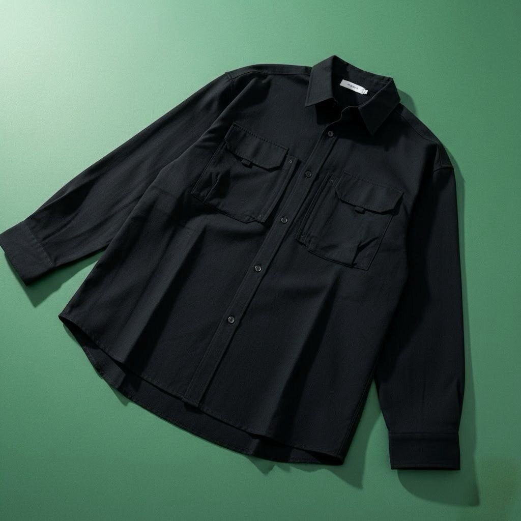 Chemise noire pour homme, oversize, avec poches plaquées et manches longues. Confortable et élégante, idéale pour tous les jours.