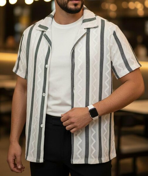 Cette chemise rayée pour homme allie élégance et confort. Idéale pour des occasions formelles ou décontractées, elle se distingue par ses lignes épurées et son design moderne. Fabriquée avec des matériaux de qualité, elle assure une tenue impeccable et un style unique. Choisissez cette pièce pour rehausser votre garde-robe et faire forte impression.