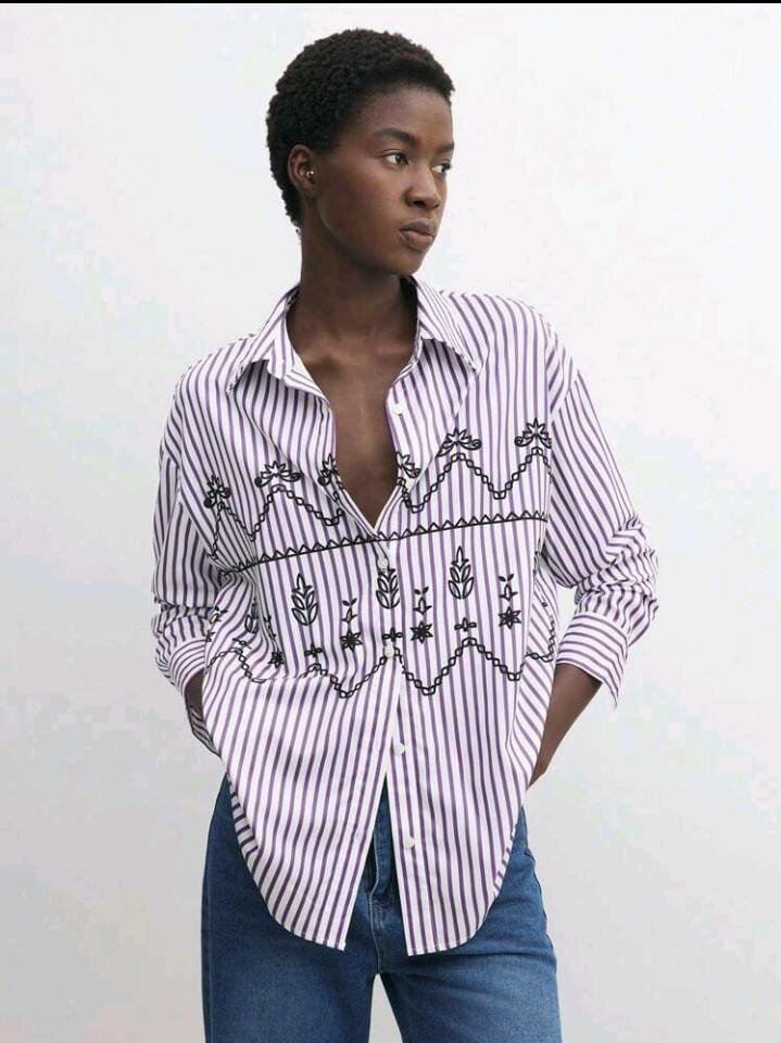 Adoptez un style élégant avec cette chemise rayée en coton ornée de magnifiques broderies. Idéale pour un look décontracté ou professionnel, elle s'accorde parfaitement avec un jean ou un pantalon tailleur. Confort et style se rencontrent dans cette pièce unique.