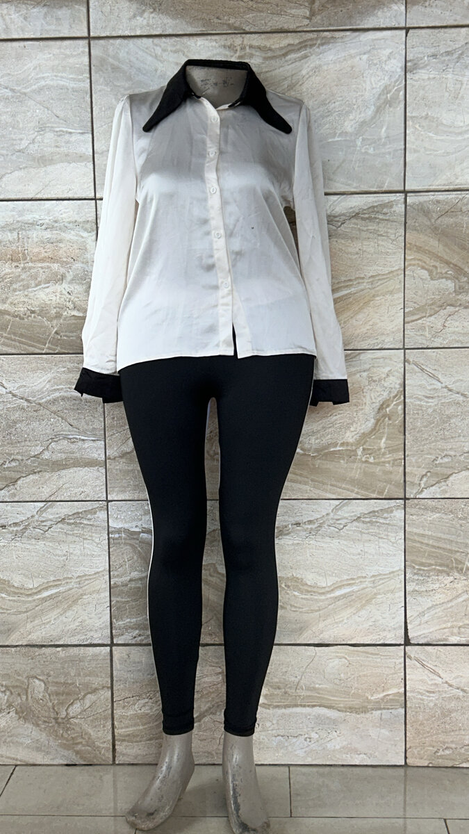 Optez pour une élégance contemporaine avec ce chemisier blanc à col noir contrastant. Parfait pour le bureau ou une sortie décontractée, il apporte sophistication et style à votre tenue. Confortable et stylé, idéal pour les femmes modernes.