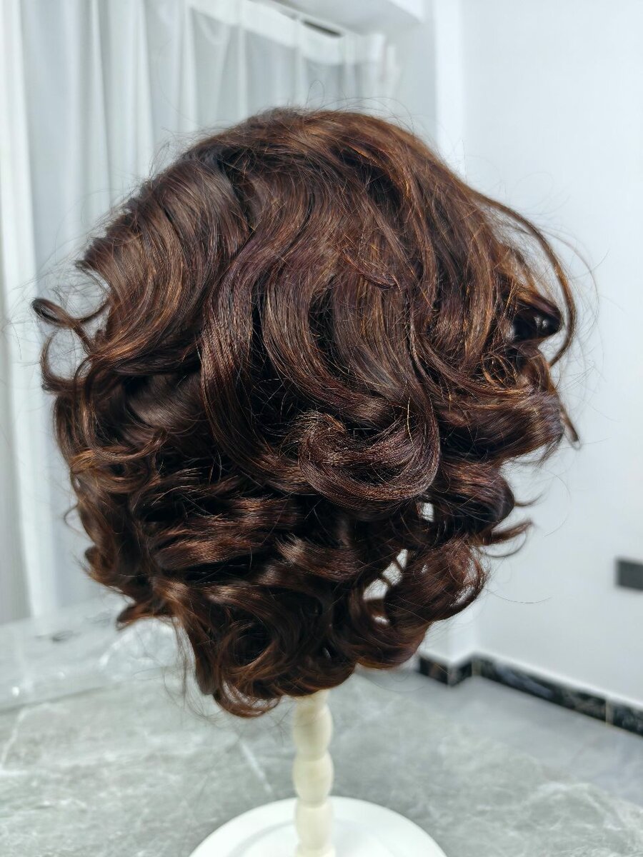 Cheveux vietnamiens, longueur 12, bouclés noirs et bruns, frontal 5x5, neufs et non utilisés, haute densité.