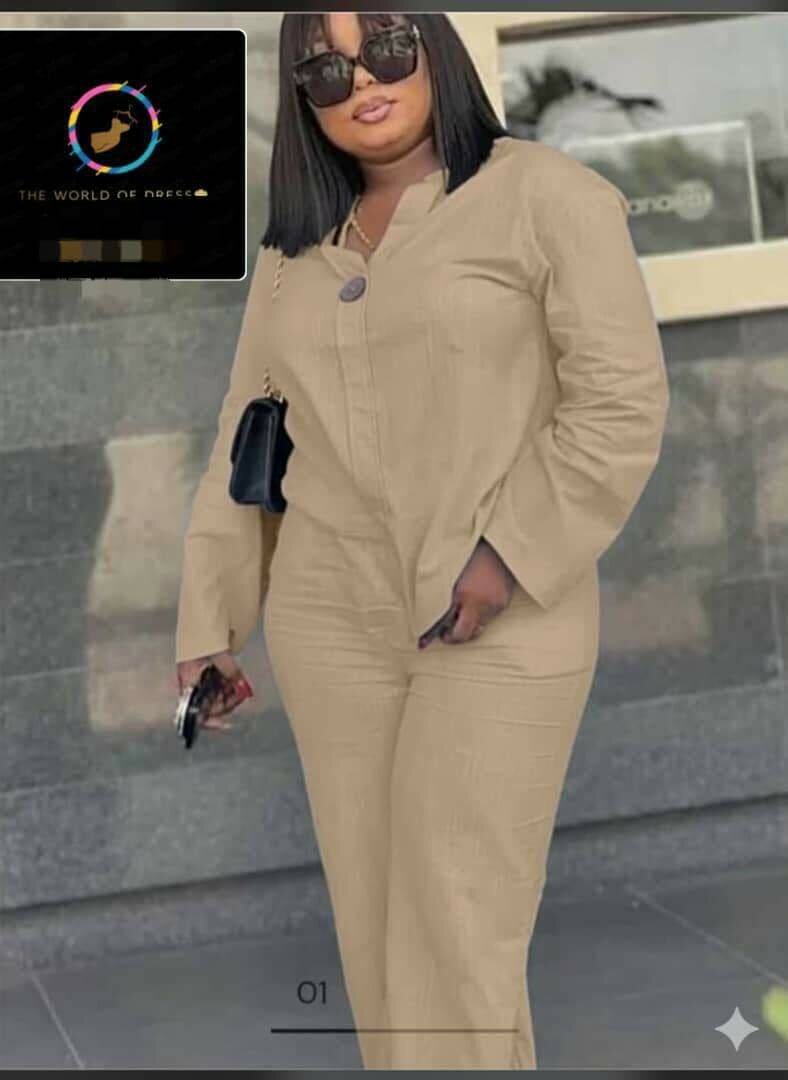 Élégante combinaison beige, parfaite pour un look professionnel ou décontracté. Confortable et stylée, idéale pour toutes les occasions. Associez-la à vos accessoires préférés pour compléter votre tenue.