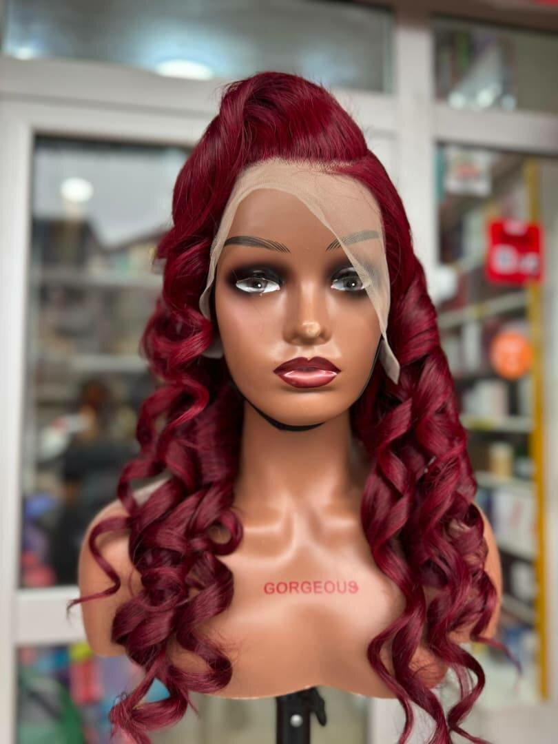 Transformez votre look avec cette magnifique perruque rouge ondulée.