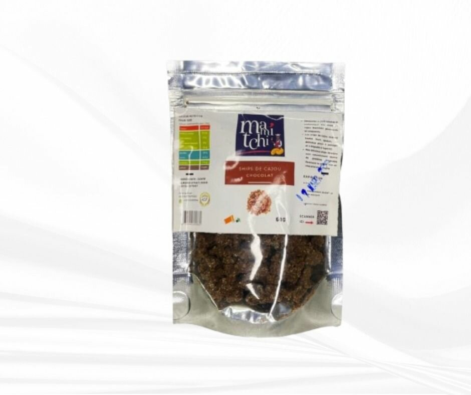 Chips de cajou au chocolat croquantes, saines et 100 % naturelles. Une explosion de saveur à chaque bouchée !