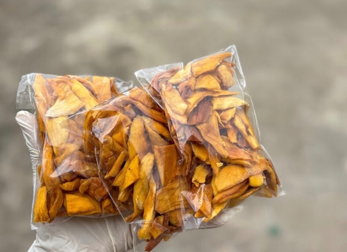 Découvrez nos chips de mangue séchée, un en-cas sain et délicieux ! Fabriqués à partir de mangues mûres, ces chips offrent un goût sucré naturel idéal pour combler vos petites faims. Parfait pour les voyages, au bureau ou à la maison. Un choix sain et savoureux !