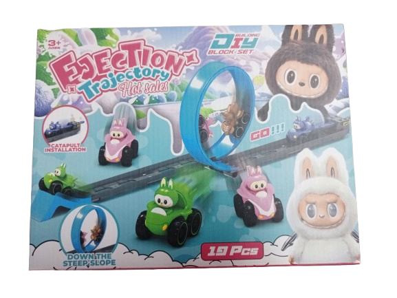 Découvrez notre circuit de voitures avec catapulte Ejection Trajectory. Conçu pour les enfants de 3 ans et plus, cet ensemble de 19 pièces garantit des heures de divertissement. Assemblez la piste, installez la catapulte et lancez les voitures à travers des obstacles excitants. Parfait pour développer la coordination œil-main et l'imagination.