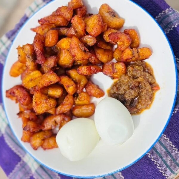 Découvrez le plaisir du goût avec notre plat africain frit, accompagné de sauce épicée et d'œufs durs. Parfait pour un repas authentique.