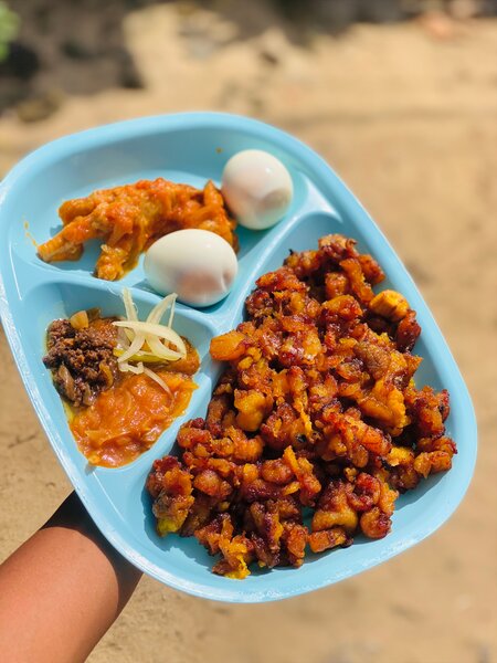 Alloko + claclo + des œufs + des pattes avec de lattieke comme supplément