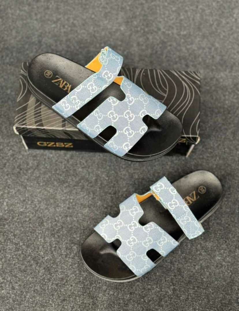 Claquette bleu avec cemelle noire