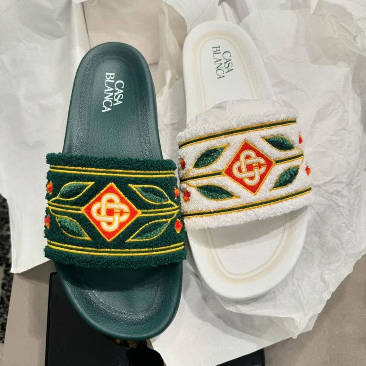 Découvrez le confort absolu avec ces claquettes Casa Blanca. Idéales pour une promenade relaxante ou une journée à la plage, elles combinent style et fonctionnalité. Le design brodé élégant et les couleurs vives ajoutent une touche de sophistication.