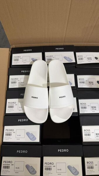 Claquettes blanches Givenchy, parfaites pour un style décontracté. Confortables et élégantes, idéales pour la plage ou la piscine. Logo distinctif et design moderne.