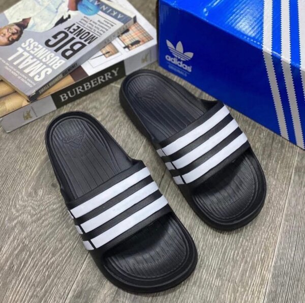 Ces claquettes blanches avec rayures noires sont idéales pour un look décontracté et confortable. Parfaites pour une utilisation à la plage ou à la piscine, elles offrent une semelle antidérapante et un design moderne. Un choix parfait pour les journées chaudes d'été!