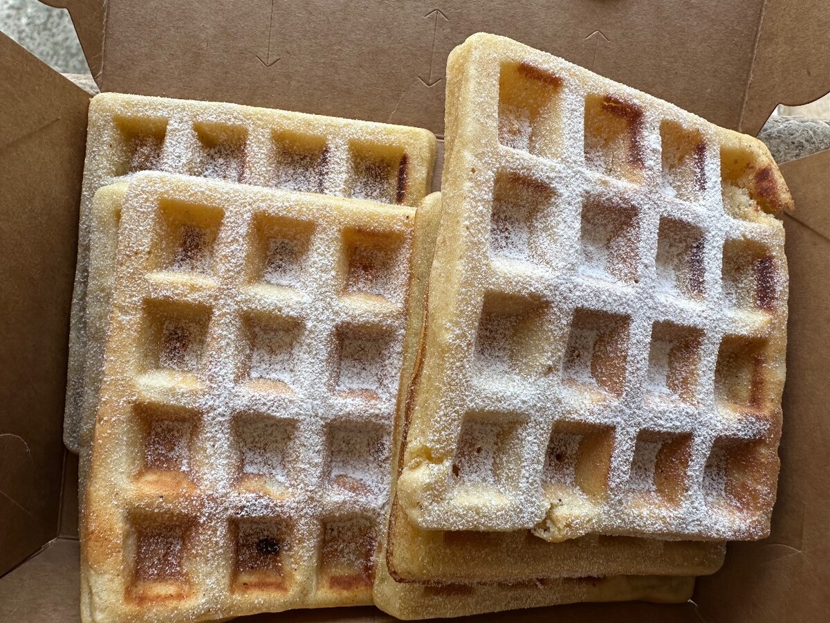 Savourez des gaufres croustillantes et moelleuses, légèrement saupoudrées de sucre glacé. Parfait pour un petit-déjeuner gourmand ou un dessert réconfortant
