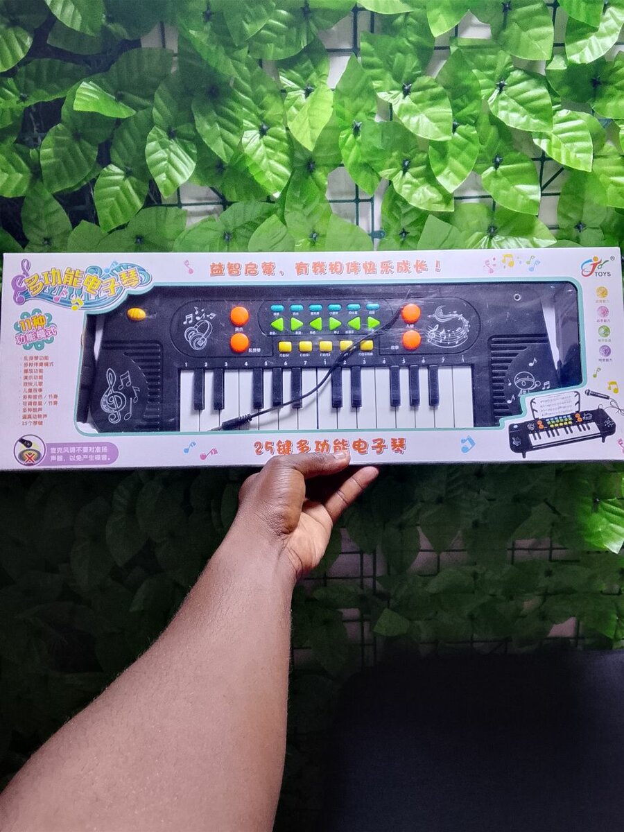 Initiez votre enfant à la musique avec ce clavier électronique à 25 touches. Parfait pour les petits musiciens, il inclut plusieurs sons et un microphone pour chanter en même temps. Compact et ludique, il est idéal pour développer la créativité musicale des enfants.