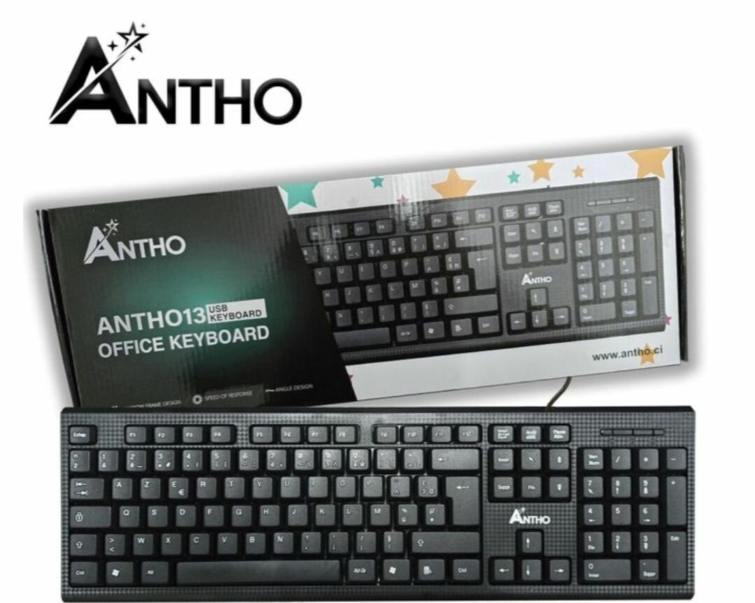 Clavier ANTHO français AZERTY ergonomique pour bureau, connectivité USB, idéal pour une utilisation quotidienne en entreprise ou à la maison. Profitez d'une frappe confortable et silencieuse.