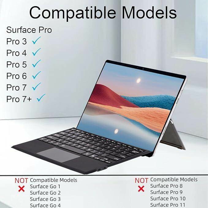 Clavier amovible pour Surface Pro 3-7+. Conception légère et élégante, parfaite pour une utilisation portable. Idéal pour professionnels et étudiants.