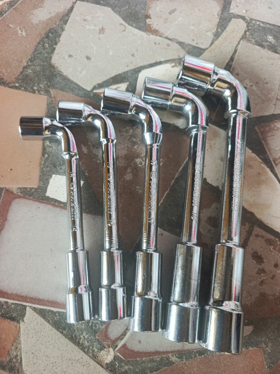 Jeu de 5 clés à douille articulées en métal chromé pour écrous et boulons. Conception robuste et durable pour un usage intensif. Facile à utiliser dans les espaces restreints.