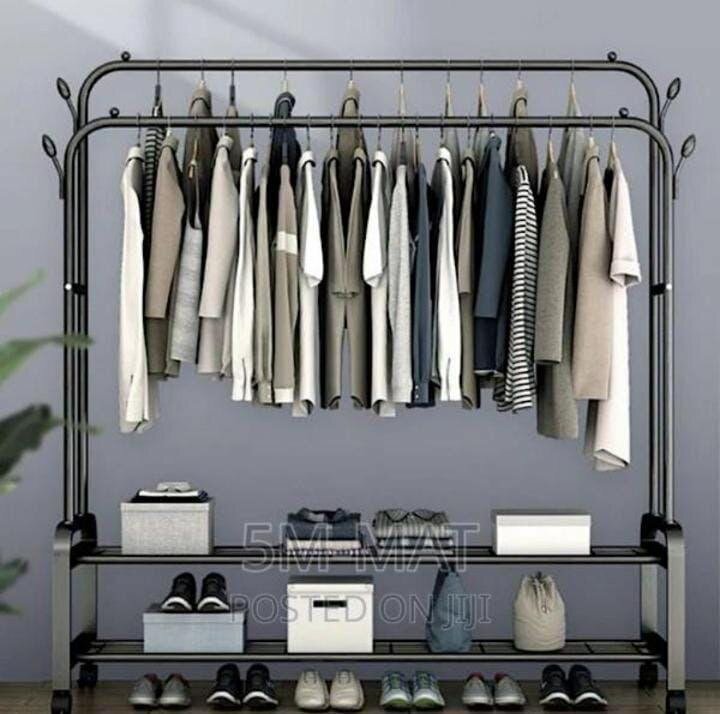 Metal Double Bar Clothes Rack With 2 Tier Shoe Rack