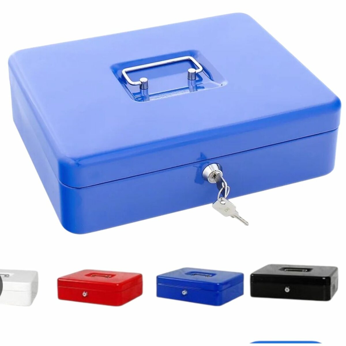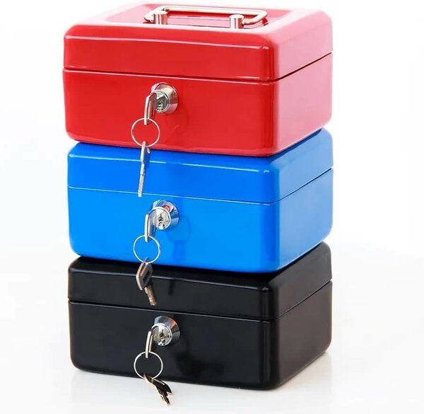 Coffre-fort métallique robuste avec serrure à clé pour un stockage sécurisé. Disponible en plusieurs couleurs. Idéal pour la maison ou le bureau. Taille Grande