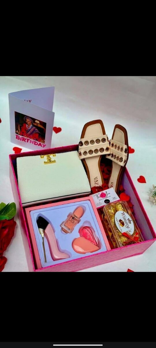 Surprenez avec ce coffret cadeau d'anniversaire somptueux comprenant des sandales élégantes, des produits de beauté raffinés et une carte personnalisable. Idéal pour une touche de luxe et d'affection.