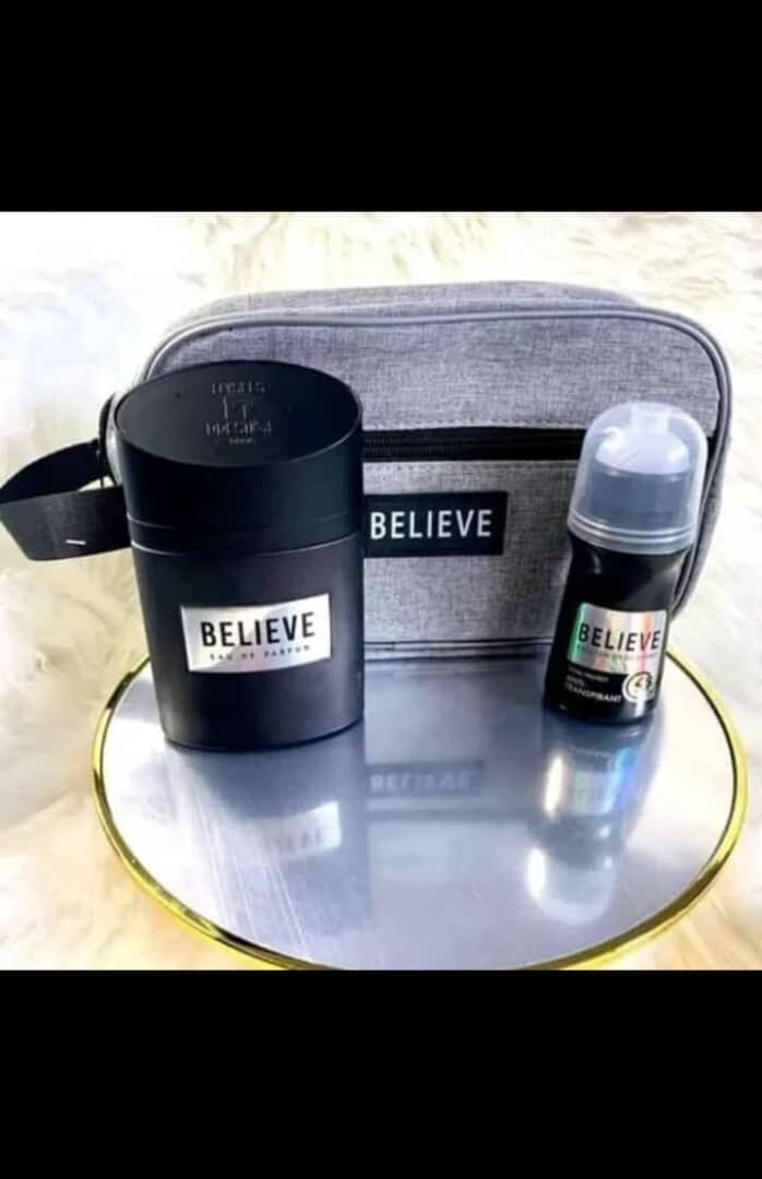 Découvrez le coffret Believe pour homme, idéal pour un cadeau. Ce set contient une eau de toilette élégante et un déodorant parfumé, présentés dans une pochette pratique et stylée. Parfait pour les hommes modernes.