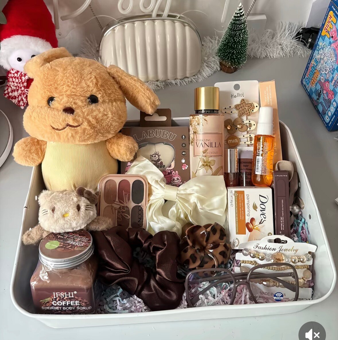Découvrez notre coffret cadeau luxueux, parfait pour les femmes. Il comprend une peluche douce, des produits de soins de la peau de haute qualité, des accessoires de mode élégants et des friandises. Un cadeau idéal pour Noël, un anniversaire ou toute autre occasion spéciale.
