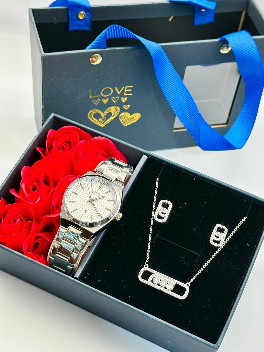 Offrez un coffret cadeau élégant comprenant une montre en or et un ensemble de bijoux assortis. Parfait pour marquer une occasion spéciale, ce set saura séduire par ses détails sophistiqués. Idéal pour celles qui apprécient le luxe et l'élégance au quotidien.