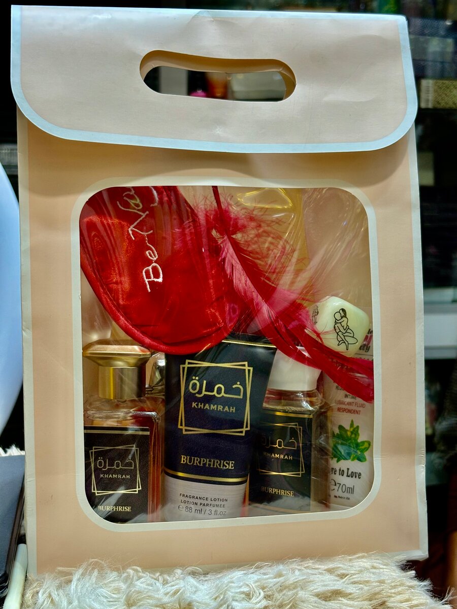 Découvrez notre coffret cadeau parfum et lotion, idéal pour toute occasion spéciale. Composé de produits de haute qualité Khamrah, ce set comprend des lotions et parfums aux fragrances délicates qui envelopperont votre peau d'un voile de douceur et de sensualité. Parfait pour offrir ou se faire plaisir, c'est le cadeau idéal pour choyer vos proches et vous-même. Profitez d'un moment de luxe et de soin.