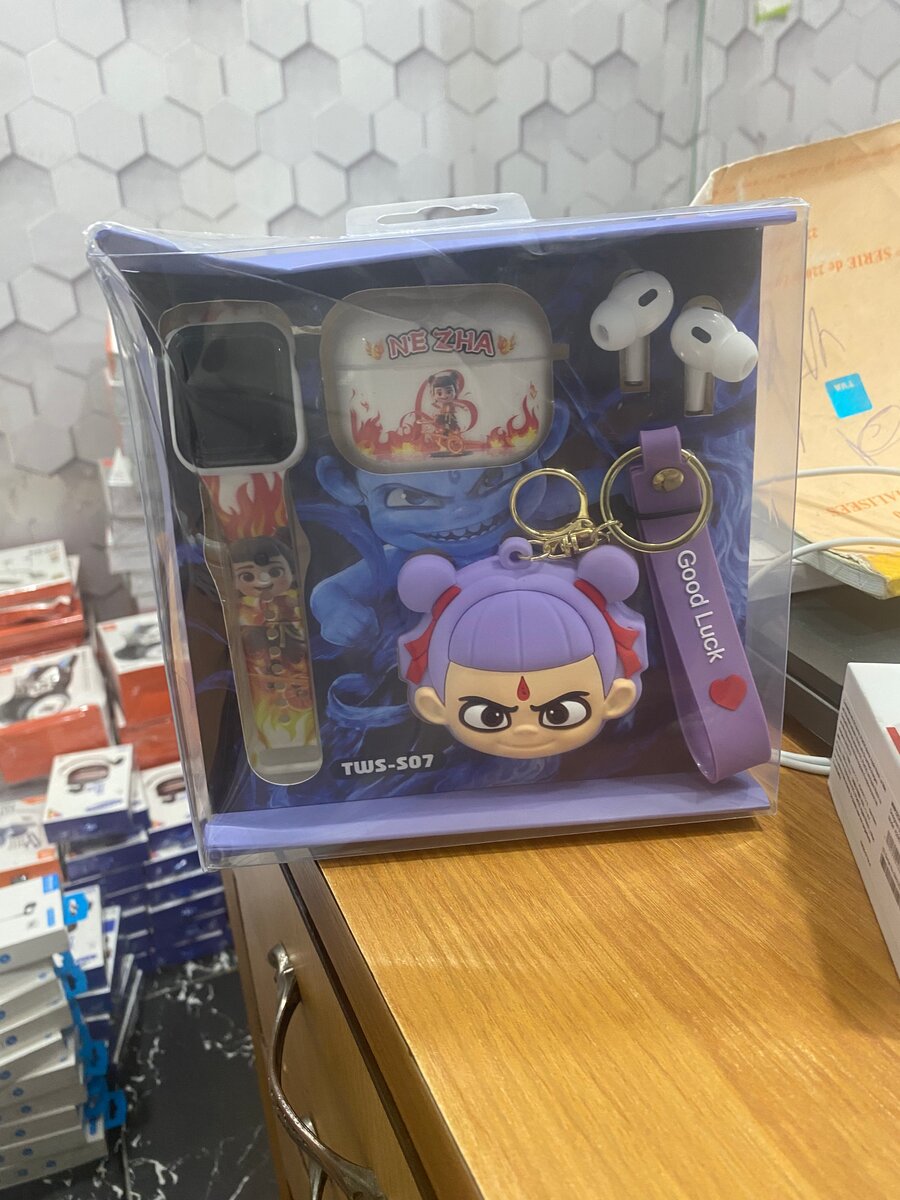 Explorez notre coffret d'accessoires inspiré de Nezha, parfait pour les amateurs de high-tech. Comprend étui de protection pour écouteurs, coque pour montre, porte-clés et plus. Allie style unique et fonctionnalité pour protéger et personnaliser vos appareils.
