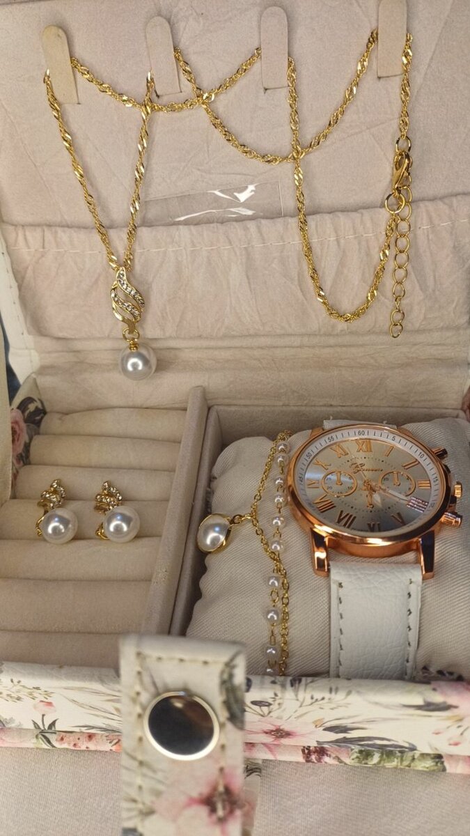 Offrez un coffret élégant et unique contenant une montre, un collier, un bracelet et une paire de boucles d'oreilles en acier inoxydable . Avec ses motifs fleuris délicats , c'est le cadeau parfait pour faire plaisir à ceux que vous aimez ️. Disponible à seulement 15k . Faites un geste inoubliable !