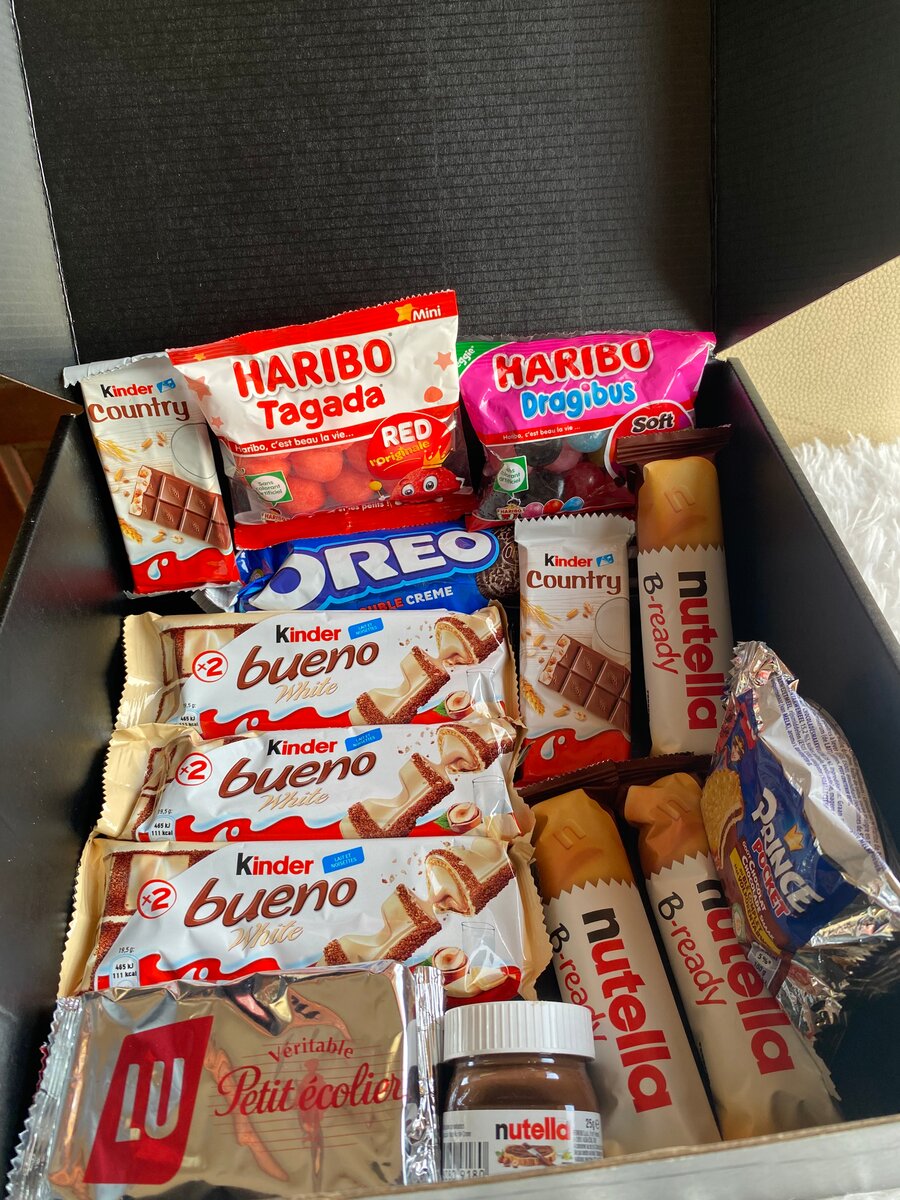 Dégustez un assortiment gourmand avec ce coffret de délices chocolatés, comprenant les classiques Kinder Bueno, Nutella, et biscuits Oreo. Parfait pour un cadeau ou une pause sucrée.