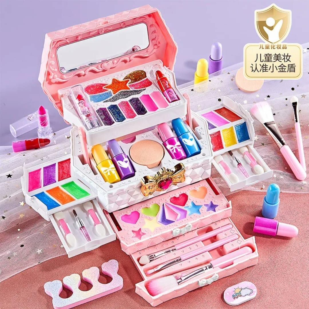 Un coffret maquillage enfant pour s'amuser et être créatif. Comprend des fards colorés, rouge à lèvres et pinceaux adaptés aux enfants. Parfait pour les petites artistes pour jouer et expérimenter en toute sécurité.