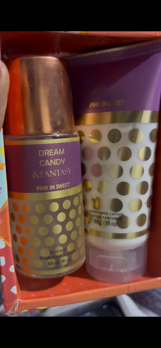 Découvrez le coffret "Dream Candy & Fantasy": une fragrance douce et envoûtante accompagnée d'une lotion parfumée. Parfait pour offrir ou pour s'offrir un moment de délice sensoriel. Un cadeau idéal pour toutes les occasions, apportant une touche d'élégance au quotidien.
