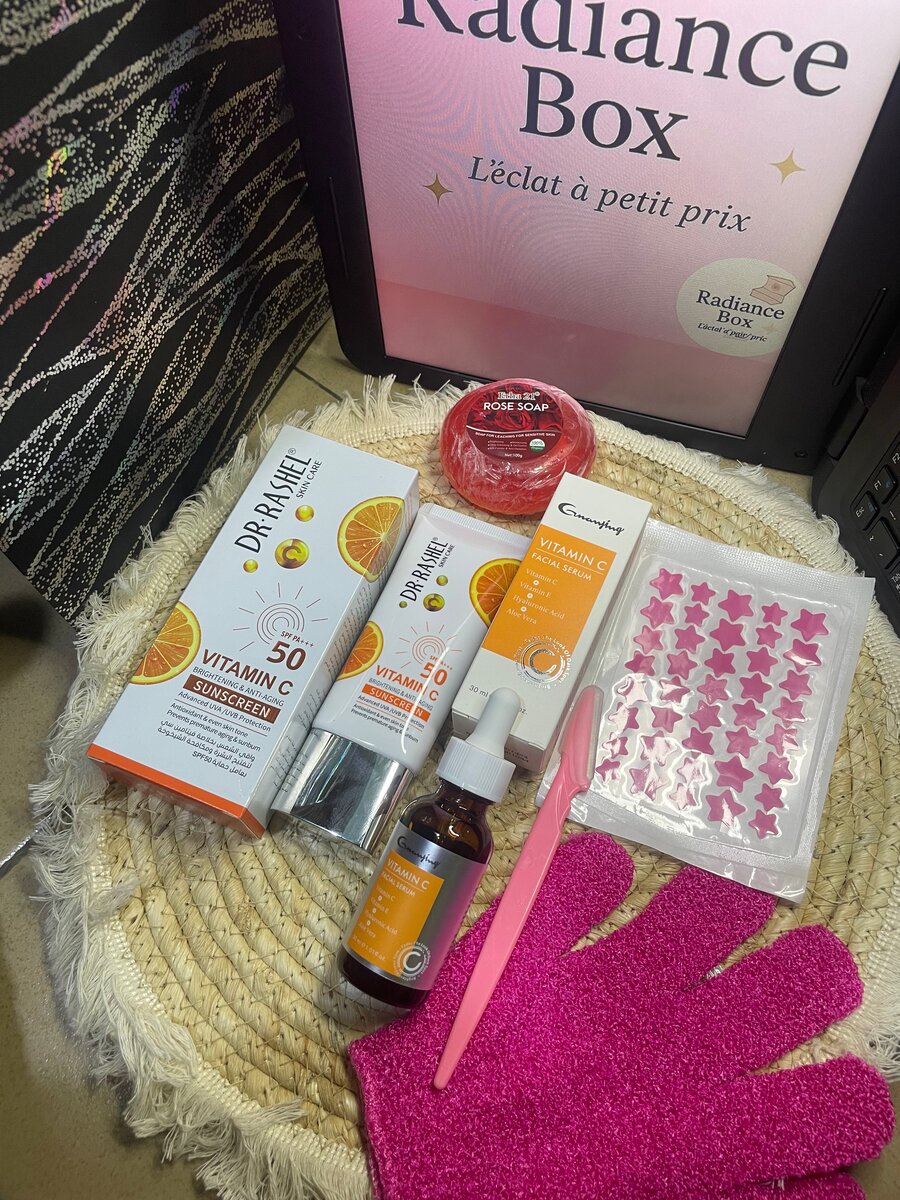 Offrez une routine soin avec ce coffret vitaminé : crème solaire et sérum à la vitamine C pour une peau radieuse, savon à la rose, gant exfoliant, et plus. Idéal pour une peau éclatante!