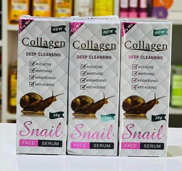 Collagen snail face serum is a powerful anti-aging moisturizing serum that solves a variety of skin problems like wrinkles, dryness of the skin, age spots, dull skin, pigmentation etc..It eliminates these issues and reduces the effects of melanin while giving you an ageless glow .